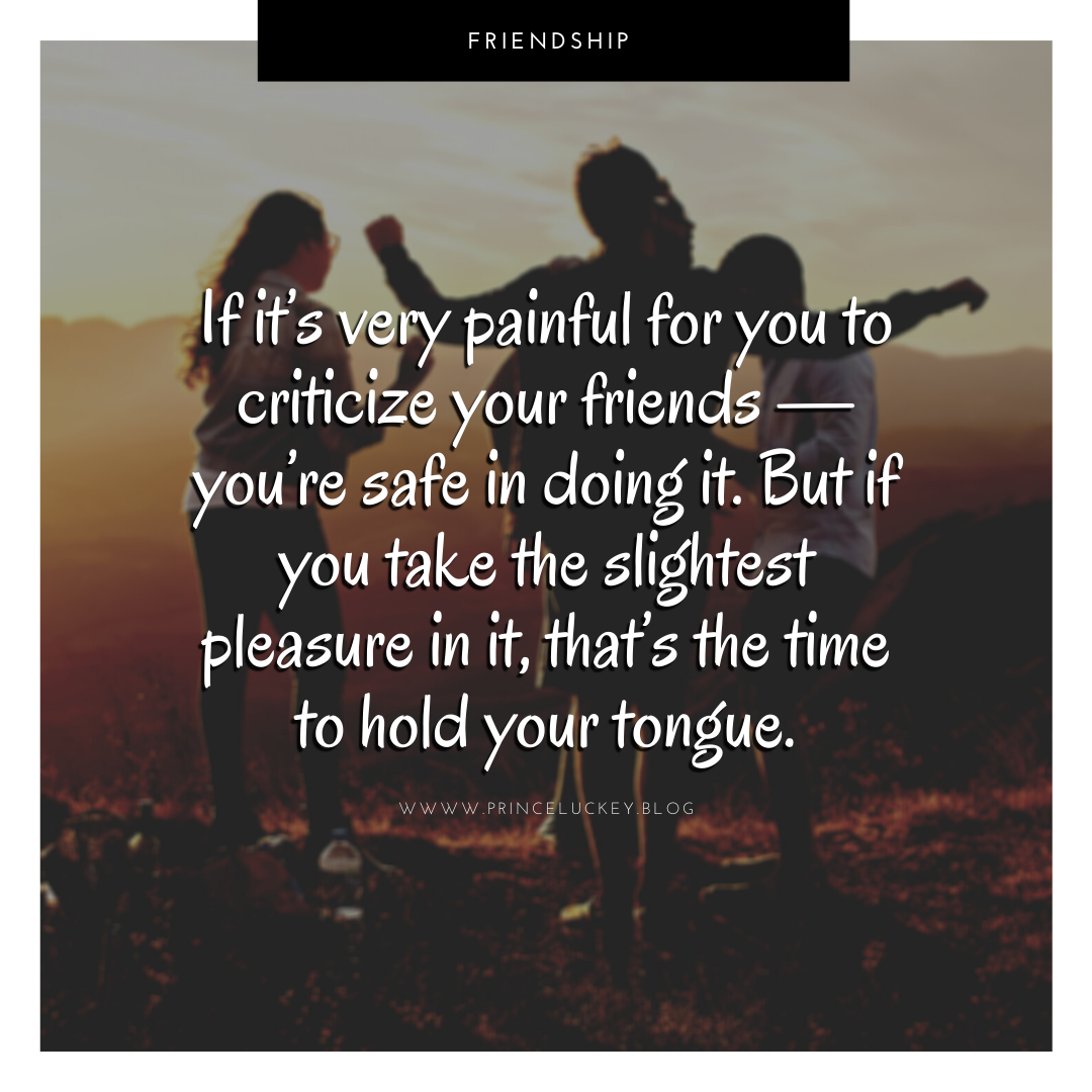 8. If it’s very painful for you to criticize your friends — you’re safe in doing it. But if you take the slightest pleasure in it, that’s the time to hold your tongue.